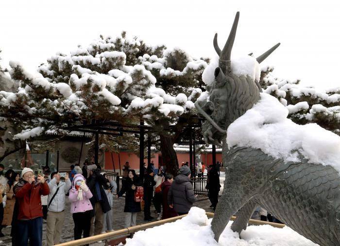 1月18日,雪后的北京银装素裹,市民、游客纷纷出门赏雪游玩。