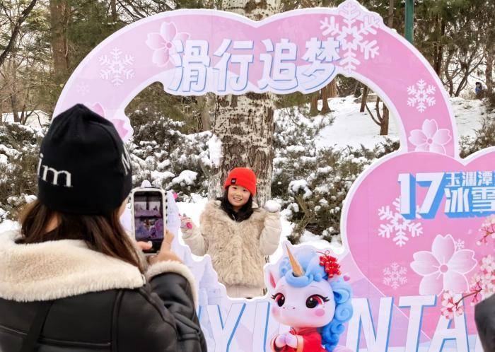 1月18日,游客在北京玉渊潭公园拍照留念。新华社发(夏冉 摄)