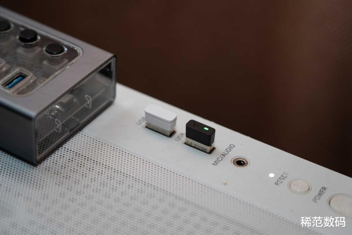 另外这个nano 8K接收器要点个赞。难以想象在这么小的体积内集成了电量指示灯,通过颜色变化绿、黄、红。让我随时掌握电量状态,彻底告别游戏中突然没电的尴尬。同时还能支持到8K这么强的信号回报,妥妥的小身材,大能量。