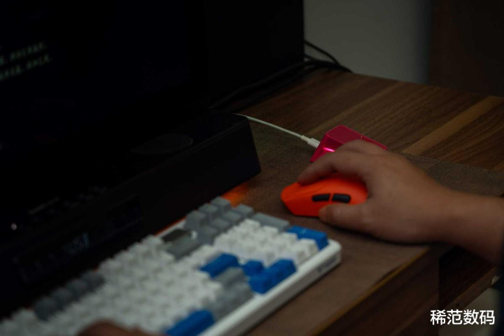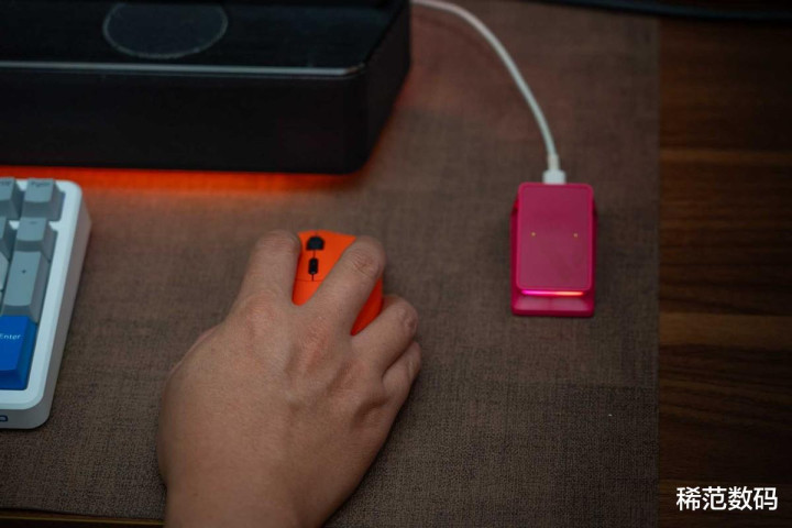 性能强,续航怎么样?如果回报率设定在1K下,它的续航仍然长达750小时。这基本相当于半年不用充电。即使在性能全开的8K回报率的狂暴状态下,也能连续使用120小时左右。配合底部的磁吸扩展仓,用P5 PLUS触点充电模块,VT7焰影橙可以实现随放随充的永动机模式。