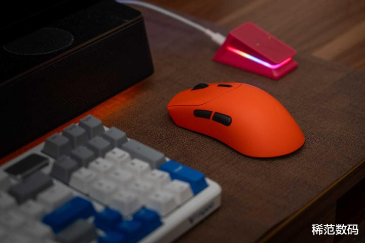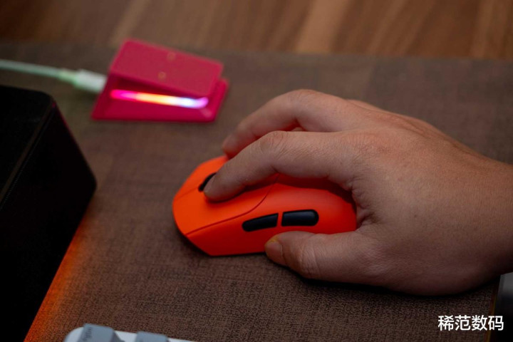 视觉上,焰影橙的饱和度调校得恰到好处,既不像某些橙色那样显得廉价,也不过分张扬。在清一色的黑白鼠标中,它能瞬间成为桌面的视觉。它并非单纯的橙色,而是在光线照射下呈现出细微的渐变质感,既有电竞的酷炫,又不失时尚气息。