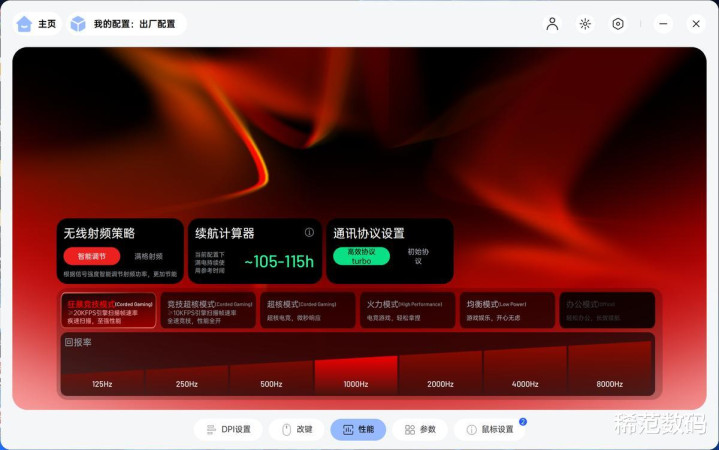 界面直观,功能极深。我不仅可以在驱动中切换不同的性能模式,如狂暴竞技、超核、均衡、办公等多种模式,还能实时看到不同模式下的预估续航时间。
